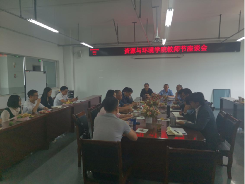 2021年9月10日中午,资源与环境学院在12教资环院教工之家召开了第37个教师节教职工座谈会,会议由资源与环境学院党委副书记邱勇副教授主持,学院院长李海涛教授和副院长张万明教授以及全体教职工参会。